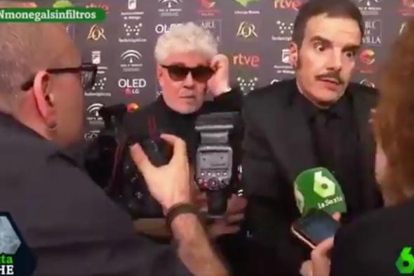 Entonces la periodista arrimó el micrófono y Almodóvar se acercó a contestar. “Oye, Sexta Noche, que no me dejan. Hoy he tenido que hablar con muchísima gente y entonces no soy dueño ni de mi templo, ni de mi cuerpo, ni de mi persona”, se excusó el director.