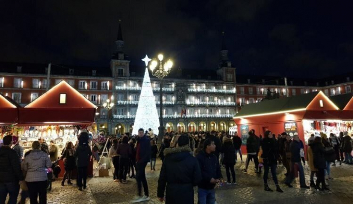 Cada año la Asociación del Mercado Tradicional Navideño de la Plaza Mayor llena la plaza más mítica de la capital con más de un centenar de coloridas casetas. Los puestos ofrecen todo tipo de artículos ideales para estas fechas:
