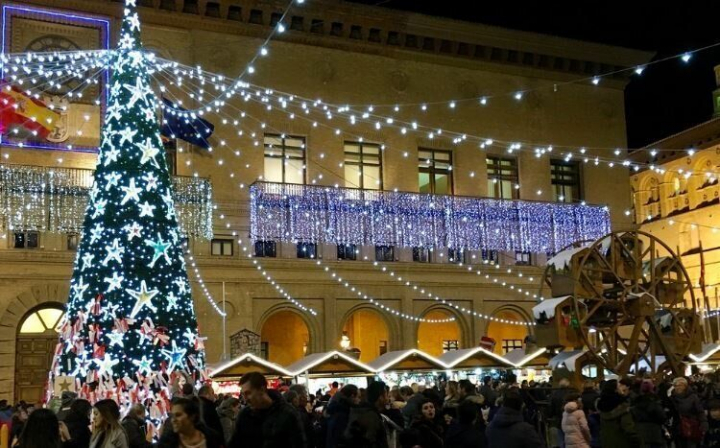 La capital aragonesa ofrece un espectacular mercado navideño en la plaza del Pilar. Cuenta con 40 casetas en las que se venden todo tipo de productos relacionados con esta época del año. Además, frente a la Catedral, montan un nacimiento de impresionantes dimensiones. La plaza también pone a disposición de los visitantes una pista de patinaje, un tobogán de trineos y puestos con comida típica de Aragón.