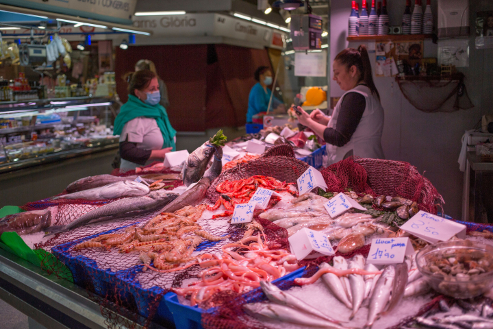 Una pescadería en el mercado Santa Caterina en Barcelona.Manuel Medir via Getty Images