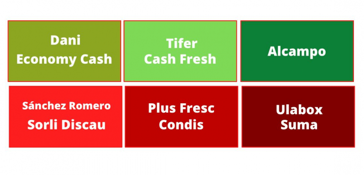 En el extremo contrario están Sánchez Romero y Sorli Discau como las locales más caras; Plus Fresc y Condis, a nivel regional; y el supermercado online Ulabox y la cadena Suma, a nivel nacional.