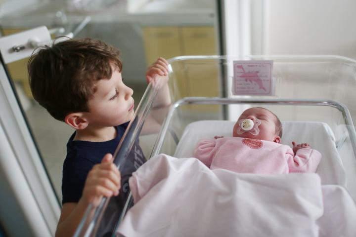 Una recién nacida con su hermano.Catherine Delahaye via Getty Images