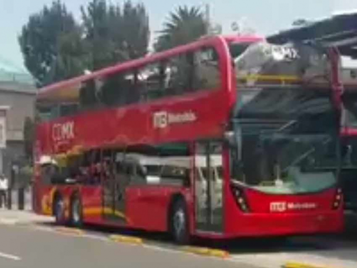 Una de las unidades del Metrobús de doble piso que circularán próximamente en la Línea 7 sobre Reforma, se voló el techo durante una prueba realizada en una estación de la Línea 6.