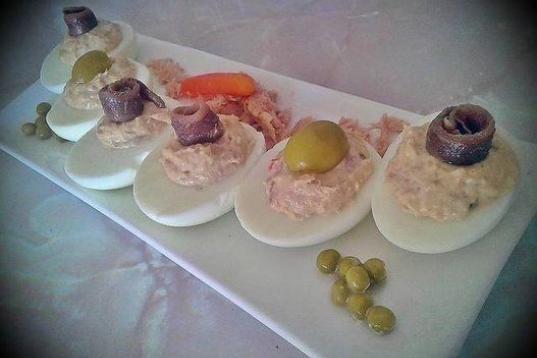 También lleva pimiento morrón, mayonesa y aceitunas rellenas. En Cookpad puedes ver cómo hacerlos y cómo emplatarlos.