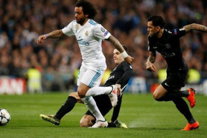 En un lance del encuentro, Marcelo ha chocado contra Dani Alves y el lateral madridista ha caído al suelo apoyando el brazo al caer.