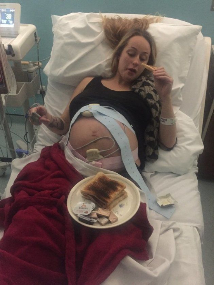 En esos momentos, me sentí disgustada porque me empezaba a dar cuenta de que iba a quedarme en el hospital. Solicité un parto en agua, pero también me lo denegaron. Volví a pedir que esperáramos para ver si aún podía ser un parto natural, pero no cedían.