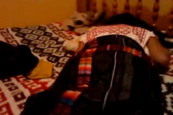 Minuto 00:01. La grabación comienza con una joven acostada sobre un catre colocado en la esquina de una habitación hecha con láminas y ladrillos grises. Usa un huipil rojo [blusa típica de los trajes indígenas] que tiene levantado hasta el cuello y una larga falda negra que cae hasta los tobillos, lo que permite ver su cuerpo semidesnudo. El hombre que graba hace acercamientos, alejamientos, tomas amplias y cerradas a sus genitales. En el suelo de la habitación hay un rebozo [manto], que completa la típica vestimenta tzotzil de las indígenas del estado de Chiapas.
