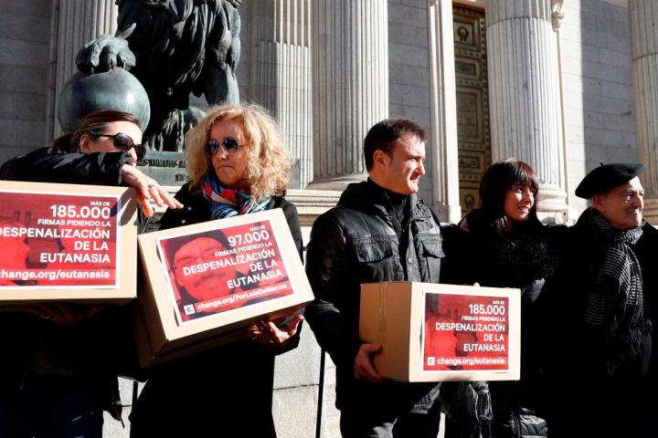 La familia de la 'amatxu' Maribel Tellaetxe llevó al Congreso 280.000 firmas para pedir que se desbloquee la ley de regulación, sin éxito por ahora.