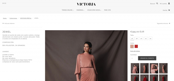 Se trata de un vestido “en punto de seda con cuello subido, manga abullonada con amplio puño y cuerpo ablusado”, según se puede leer en la web de Victoria, la firma de Martín Berrocal. La falda es “cruzada con drapeado en el lateral”.