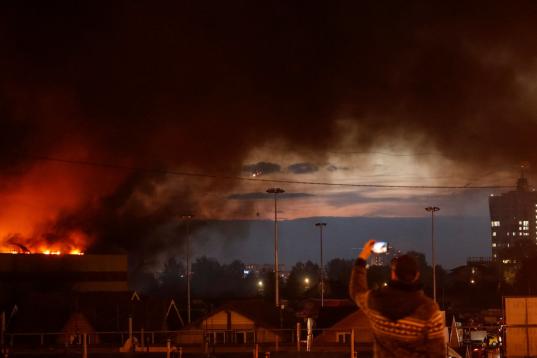 El incendio, cuya humareda puede verse desde varios kilómetros de distancia, ya propagó por una superficie de 55.000 metros cuadrados, de un espacio especializado en materiales de construcción y decoración.