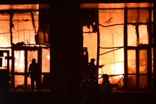 Los bomberos han movilizado un centenar de personas, 25 camiones cisterna y dos helicópteros Ka-32 para sofocar el fuego y evitar que se propague a otros inmuebles colindantes.