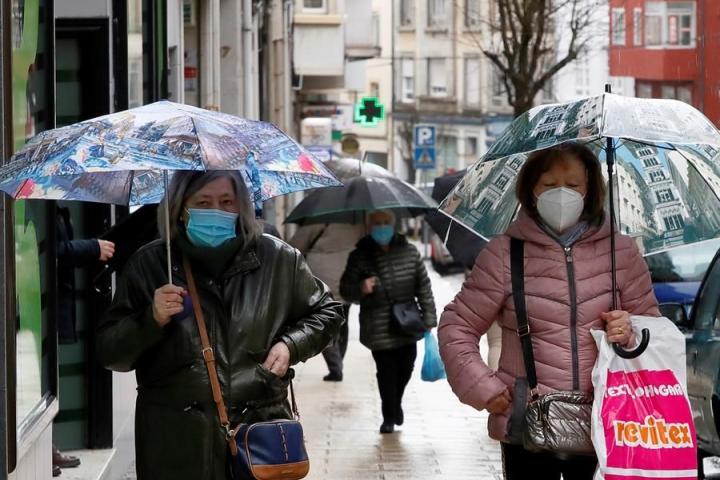 Dos mujeres pasean con sus paraguas y mascarilla en Lugo.EFE/Eliseo Trigo