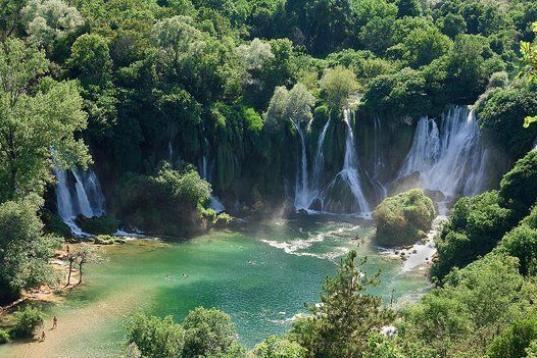 "Estas preciosas cascadas naturales se encuentran situadas cerca de la aldea de Studenci, región de Herzegovina. Se trata de un conjunto de varias cascadas cuya altura varía entre los 26 y 28 metros, y un anfiteatro con un diámetro aproximado...