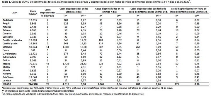 Sin embargo, los casos si han experimentado una cierta subida tras la reducción de las últimas 48 horas. De ayer a hoy se han sumado 76 casos (36 más que hace 24 horas). El total, a diferencia de las muertes, sigue moviéndose cada día, esta vez con una corrección de 219 positivos por PCR, hasta los 244.328.