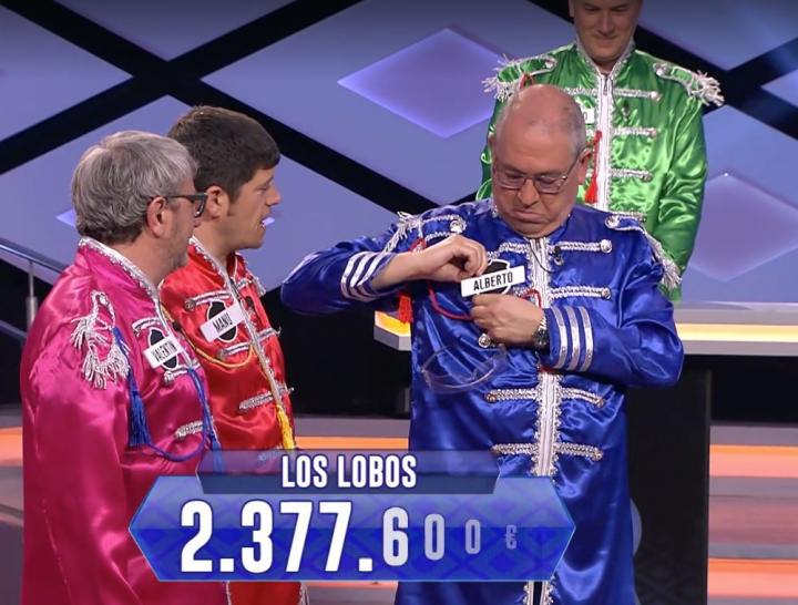 El presentador ha optado por quedarse él con el cartón con el nombre y lo ha tenido en la mano mientras Los Lobos se jugaban ganar el bote.