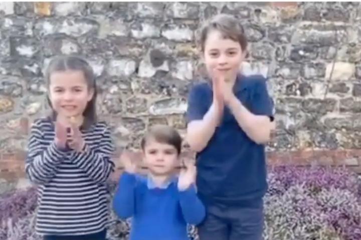 Los duques de Cambridge, Guillermo y Catalina, colgaron un entrañable vídeo de sus tres hijos de 6, 4 y 1 año aplaudiendo con ganas ante la cámara, mientras que el heredero al trono, el príncipe Carlos, que se recupera en Escocia de COVID-19, se unió al homenaje con su esposa Camilla.