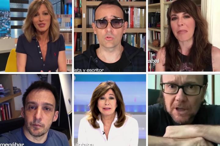 A lo largo de 21 minutos famosos como los presentadoras Mamen Mendizábal, Ana Rosa Quintana, Susanna Griso y Risto Mejide; cineastas como Santiago Segura o Alejandro Amenábar; deportistas como Fernando Alonso y Amaya Valdemoro, el cocinero José Andrés o el mago Jorge Blass desgranan sus mensajes de apoyo a la ciudadanía durante la cuarentena por el coronavirus.