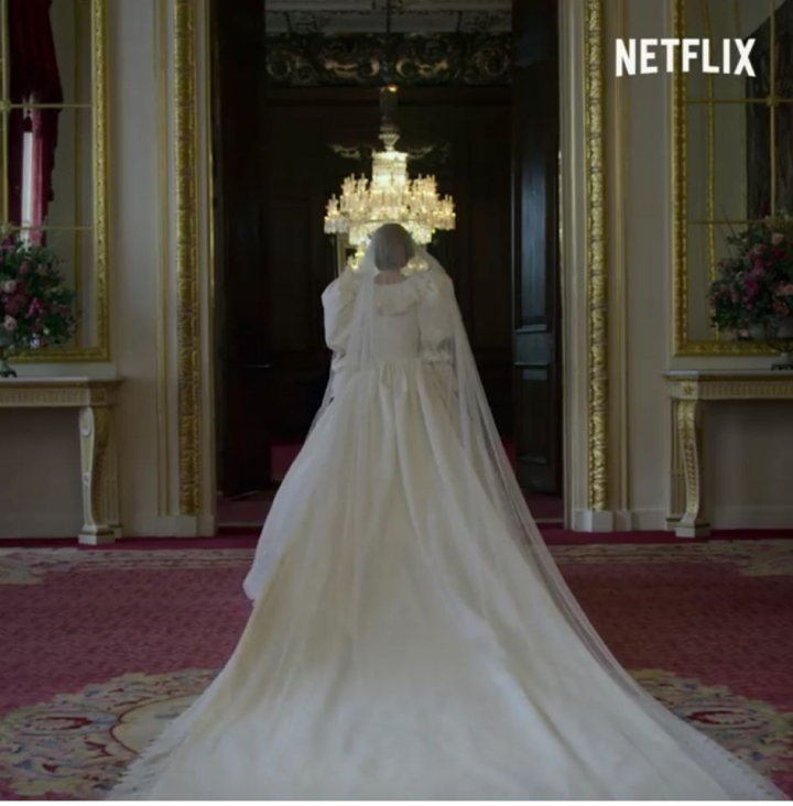 Ella es el principal aliciente del teaser que la plataforma ha compartido este jueves en sus redes sociales. Aunque ya se había visto a Corrin en el papel de Lady Di cuando se estaba todavía rodando la serie, esta imagen es especial porque se ve por primera vez la reproducción del impresionante vestido de novia que llevó al altar para dar el sí quiero a Carlos de Inglaterra.