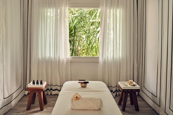 Este resort está repartido en cuatro islas del Atolón Baa, del cual se destacan sus arrecifes, acantilados sumergidos y colinas submarinas. Estos paisajes impresionantes se ven reflejados en los tratamientos que ofrece el spa Fehi. Bautizado con el nombre de Fehi, su significado es “verde” en idioma maldivo, evoca a la naturaleza y a su poder, presente en toda la experiencia de bienestar.