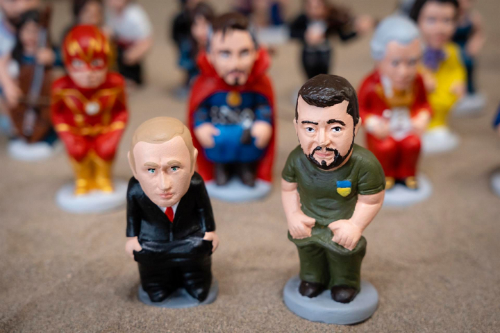 El presidente ucraniano Volodimir Zelenski y la nueva primera ministra italiana, Giorgia Meloni, se incorporan esta navidad a los tradicionales caganers con rostros famosos a los que también se suman los futbolistas Karim Benzema y Robert Lewandoski.