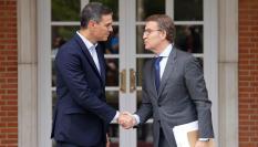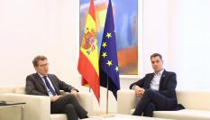 Feijóo llevando sus propuestas al presidente del Gobierno, Pedro Sánchez, en su primer encuentro en Moncloa como líder del PP.