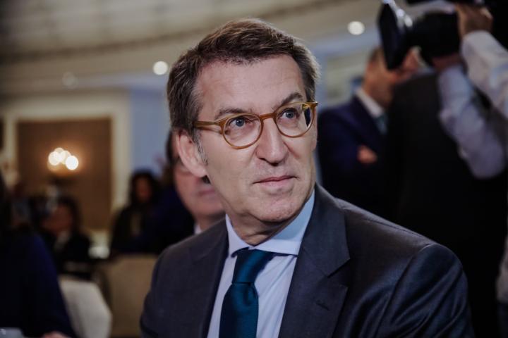 El líder del PP ha protagonizado este miércoles un desayuno informativo del medio digital El Debate en un hotel de Madrid, en el que ha estado arropado por los principales dirigentes del PP y por la presidenta de la Comunidad de Madrid, Isabel Díaz Ayuso, y el alcalde de la capital, José Luis Martínez-Almeida.