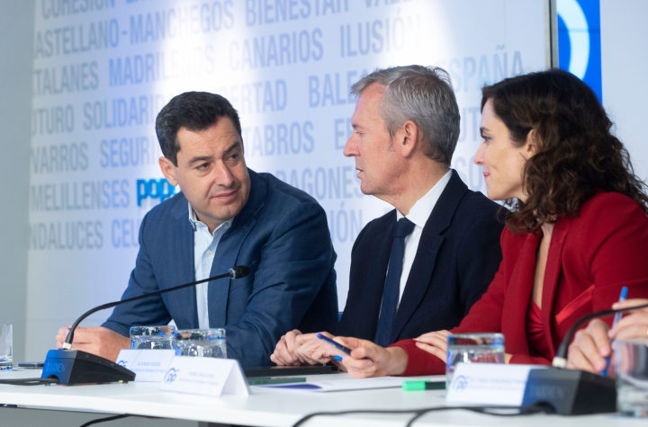 El lunes del Comité Ejecutivo, Génova distribuyó una fotografía en el despacho del líder del PP en la que Feijóo compartía protagonismo con Moreno y Ayuso. También estaban los presidentes de Galicia y Castilla y León, Alfonso Rueda y Alfonso Fernández Mañueco, y la secretaria general, Cuca Gamarra. Si bien, de esa reunión los barones salieron dando un primer toque de atención a su homóloga madrileña: “La agenda nacional la tiene que marcar el presidente”.