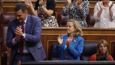 “Parece una broma, además con banda sonora”, ha comenzado su respuesta el líder del PP. “Porque la vicepresidenta segunda ha tenido una idea magnífica, que ha sido tachada de ilegal por el ministro de Agricultura, que insiste en su ilegalidad el portavoz del Congreso del PSOE, que la vicepresidenta nos dice que tiene el acuerdo con el presidente, que sale la ministra de Hacienda para dejar sin efecto la propuesta, que la ministra de Política Social dice que esa propuesta está muy bien y que la ministra de Defensa, por si había ya poco, se manifiesta en contra de la propuesta. Comprenderá que el sainete está muy bien para celebrar fiestas”.