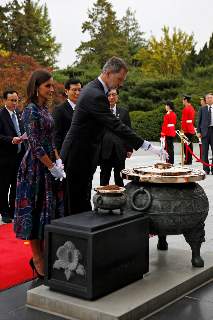 Tras ser testigos de la entronización del emperador Naruhito en Japón los reyes se han trasladado este miércoles a Corea del Sur. Su visita de Estado a este país ha comenzado con una ofrenda floral en el Cementerio Nacional de Seúl.