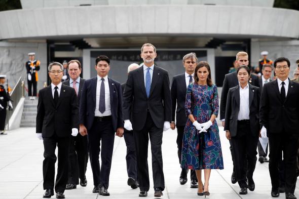 Tras ser testigos de la entronización del emperador Naruhito en Japón los reyes se han trasladado este miércoles a Corea del Sur. Su visita de Estado a este país ha comenzado con una ofrenda floral en el Cementerio Nacional de Seúl.