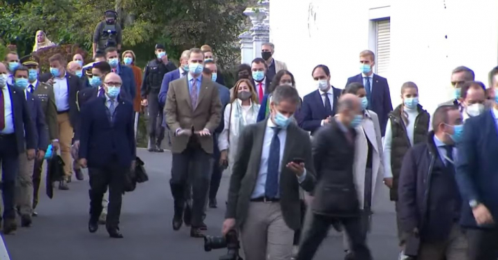 Junto a ellos, toda una comitiva liderada por la ministra de Turismo, Reyes Maroto, que ha acompañado a los monarcas y a sus hijas.