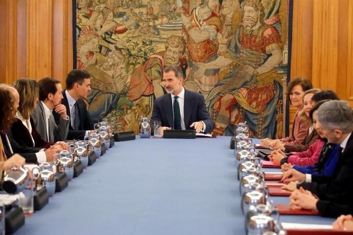 El rey preside este martes desde las 9:30 horas en el Palacio de la Zarzuela su primer Consejo de Ministros del Gobierno de coalición presidido por Pedro Sánchez.