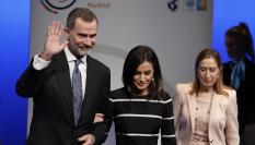 El monarca tuvo que pedir perdón después de que la periodista Blanca Berasátegui se cayese al bajar de su atril, que estaba más elevado de lo normal debido a la altura de Felipe VI.