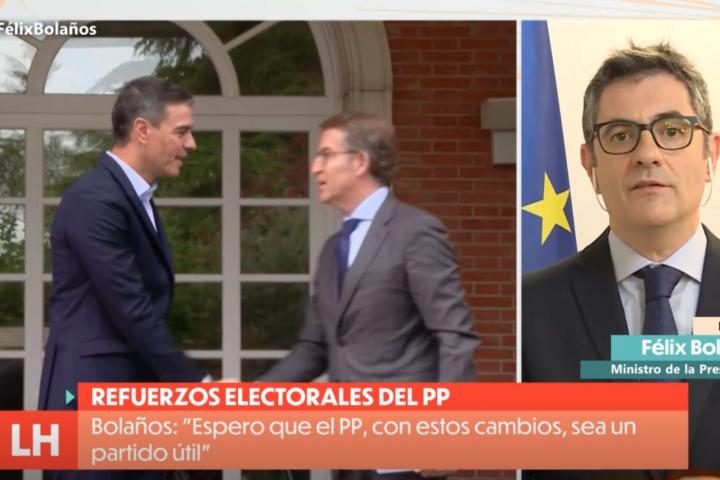 El ministro de la Presidencia, Relaciones con las Cortes y Memoria Democrática del Gobierno, Félix Bolaños, ha sido entrevistado este miércoles en La hora de La 1 (RTVE) y, en una de las cuestiones planteadas por los periodistas, ha opinado tajantemente sobre la última propuesta del líder del Partido Popular, Alberto Núñez Feijóo sobre “la lista más votada”.