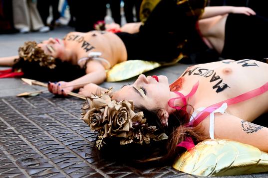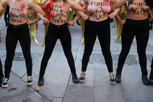 Femen se desnuda en Madrid por San Valentín contra el "amor romántico" y los feminicidios