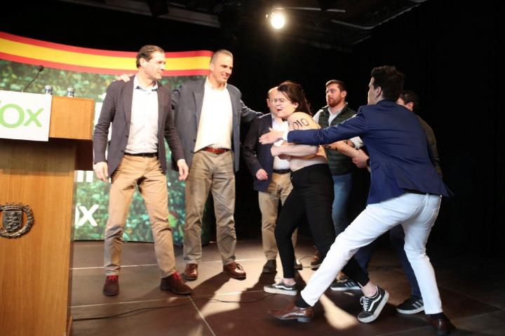 No es la primera vez que este colectivo feminista realiza una protesta en un acto del partido de Vox, ya que el pasado mes de abril una activista también logró subirse al escenario en el cierre de la campaña en la plaza de Colón de Madrid.