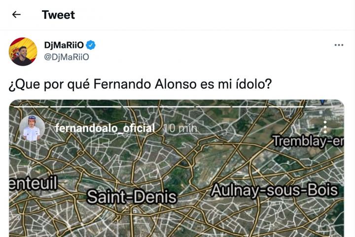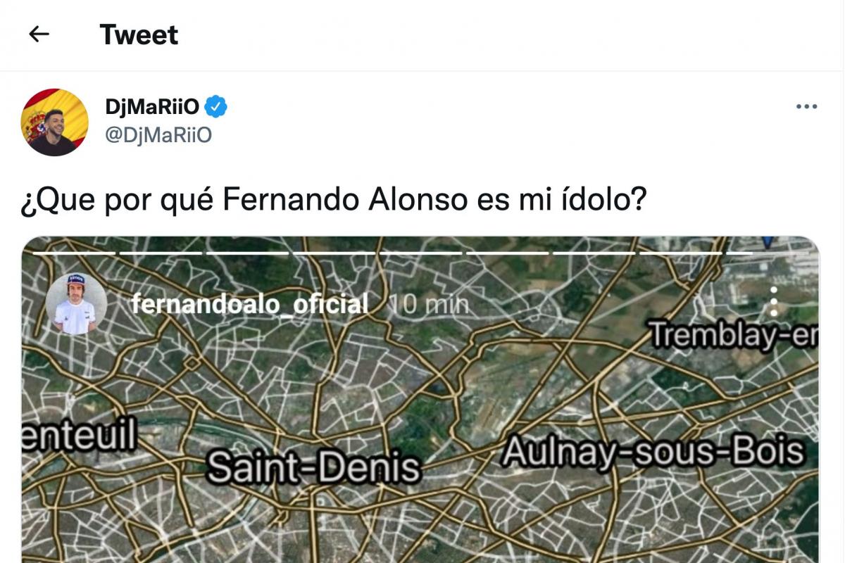 En Twitter, ha sido el creador de contenido DjMariio el que se ha hecho eco de la storie de Alonso y el que ha propiciado que se inicie el revuelo en la red social del pájaro azul.