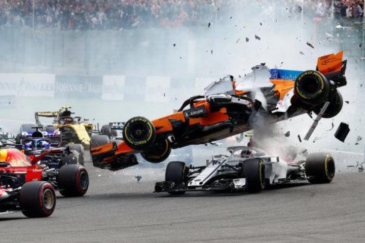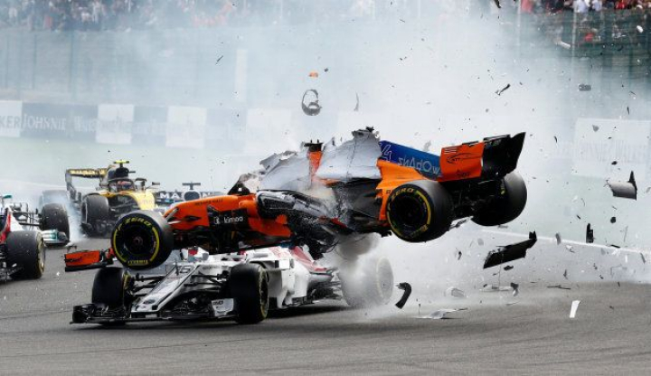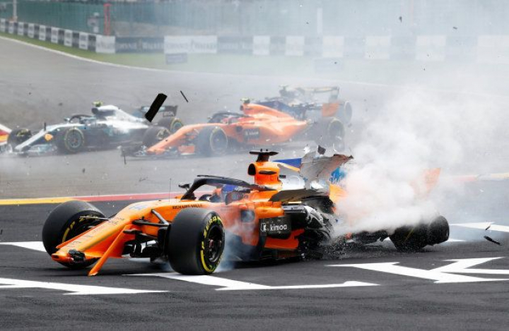 Tras la salida en el circuito de Spa-Francorchamps, Hülkenberg frenó demasiado tarde en la primera curva y golpeó fuertemente por detrás al monoplaza de Alonso, que se elevó y cayó, aunque el piloto asturiano no sufrió daños aparentes y salió de su vehículo sin problemas.