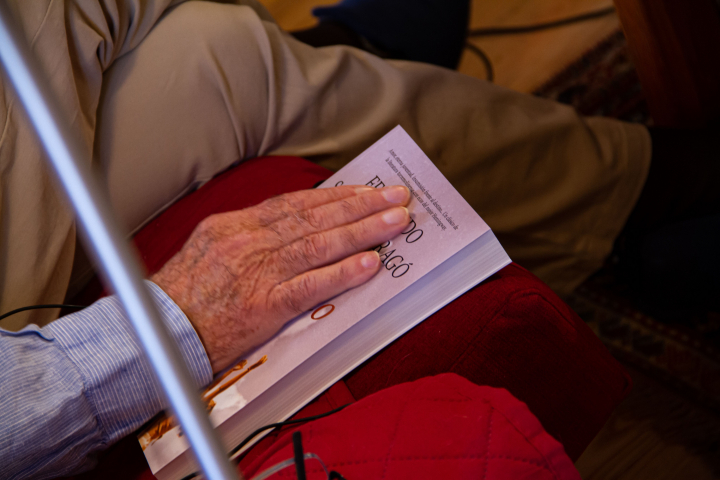 La mayor parte de los problemas son inventados por los políticos en su propio beneficio. Entonces no, yo no tengo nada que preguntarle al señor Sánchez. ¿De qué voy a hablar con el señor Sánchez? Si el señor Sánchez no ha leído un libro en su vida, yo he leído 30.000. Si el señor Sánchez no viajado en su vida. Si el señor Sánchez vive encasquetado en la política, en el Congreso, en la imagen, en la publicidad, en las derechas, en las izquierdas, en Casado, en Vox, en patatín y patatán. Yo no tengo nada que decir sobre eso. No me interesa, me aburre. Mire el libro que estoy leyendo de qué habla: de la filosofía de los gatos. Eso me interesa mucho más que el señor Sánchez, mi gato. Pero te digo Sánchez y te lo diría prácticamente de cualquier político. No me interesa lo más mínimo.