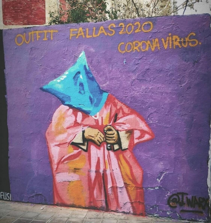 Antes de la llegada del coronavirus y cuando las fallas todavía no se habían suspendido, un dibujo de J.Warx ya se hizo viral. En él mostraba como podría ser la vestimenta de este año para la cita: la persona con una bolsa de basura en la cabeza y un EPI.