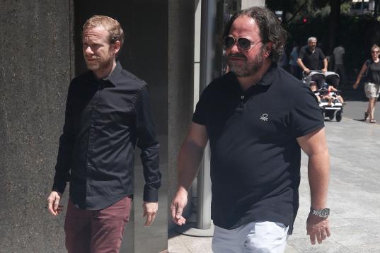 Parte del reparto de 'La Que Se Avecina' y 'Aquí No Hay Quien Viva', en el tanatorio por la muerte de Eduardo Gómez.