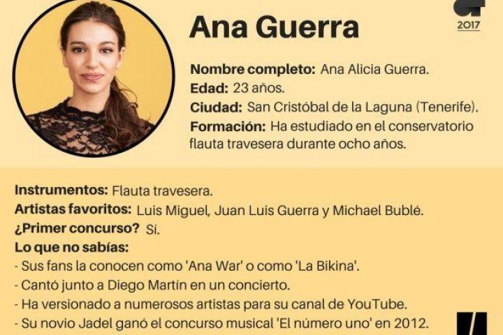 Ana Guerra, Ana War o La Bikina como la conocen sus seguidores es una de las cinco finalistas de Operación Triunfo. Aunque la canaria de 23 años solo ha sido elegida como favorita por el público en una ocasión, cuenta con todo un ejército de fans.