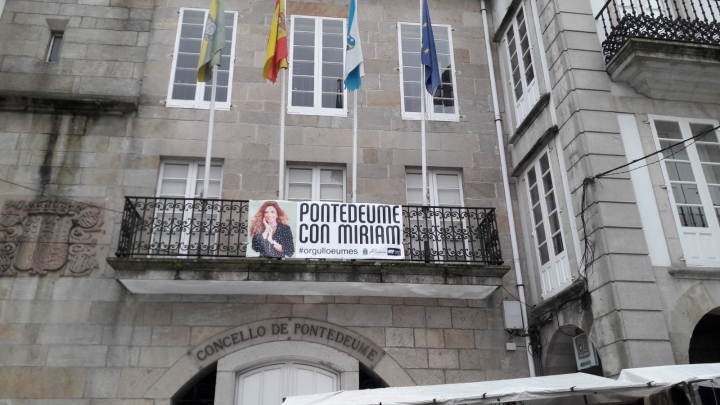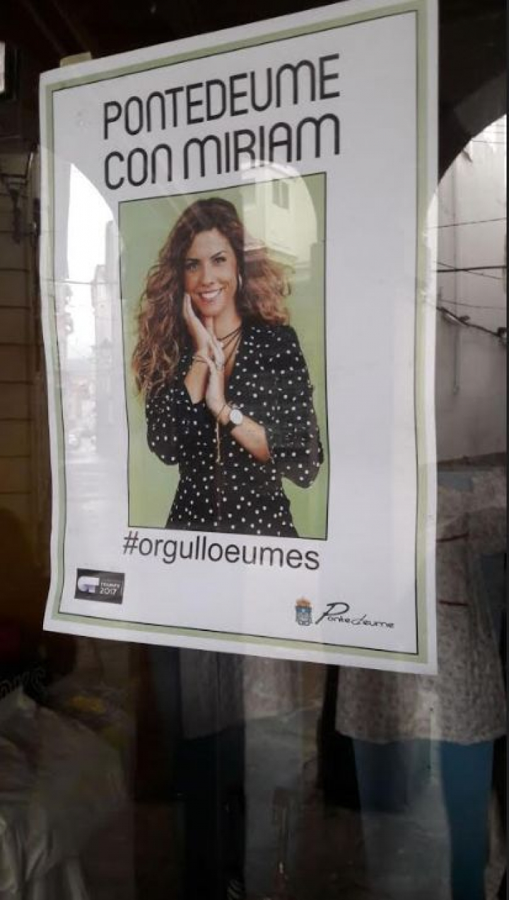 La gallega ha conseguido que hasta el ayuntamiento y los establecimientos de su localidad se empapelen con carteles de apoyo bajo el eslogan: "Pontedeume con Miriam".