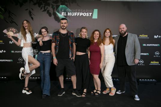 De izquierda a derecha, los 'youtubers' e 'influencers': Gakian, Alesya, Míster Jägger, Desilustración, Abi Power y Jen Herranz, con Sergi González, director de vídeo de El HuffPost