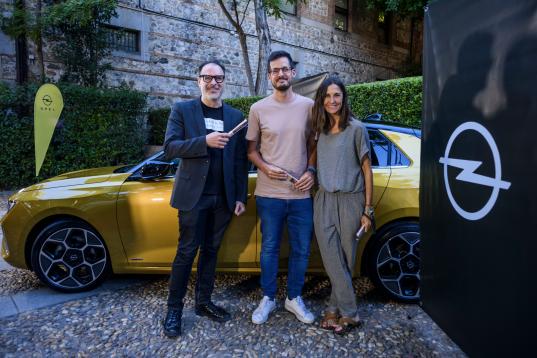Daniel Ventura y Laura Riestra junto a la delegada de Cultura del Ayuntamiento de Madrid Andrea Levy