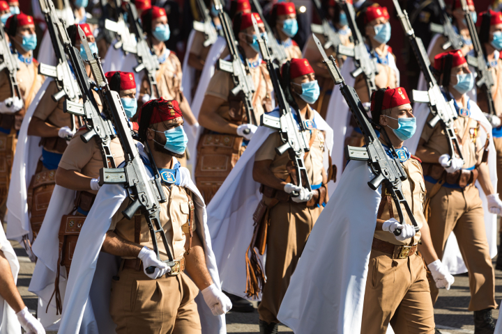 El de este miércoles no es un desfile más. Supone recuperar el brillo de los años anteriores a la pandemia de coronavirus, con más de 4.000 hombres y mujeres de las Fuerzas Armadas que marcharán junto a 150 vehículos, cerca de 220 caballos y 84 aeronaves que sobrevolarán los cielos de la capital. Los datos aportados por el Ministerio de Defensa que comanda Margarita Robles dan cuenta de que la trifulca política no es la única normalidad que vuelve a primer plano.