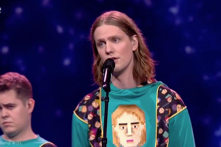 Para solventar situaciones de este tipo, los países han grabado actuaciones en vídeo para poder ser emitidas en lugar de sus actuaciones en directo. Esta es la original puesta en escena de la canción de los islandeses, 10 years: