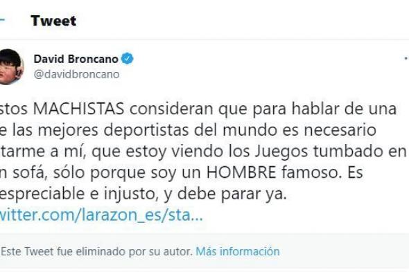“Estos MACHISTAS consideran que para hablar de una de las mejores deportistas del mundo es necesario citarme a mí, que estoy viendo los Juegos tumbado en un sofá, sólo porque soy un HOMBRE famoso. Es despreciable e injusto, y debe parar ya”, replicó el cómico, que se convirtió este martes en trending topic.