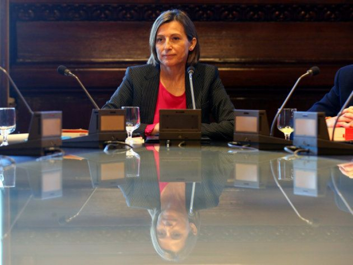 La presidenta del Parlament, Carme Forcadell, ha reaparecido este lunes, después de su declaración en el Tribunal Supremo y su noche en prisión, para presidir una reunión de la Diputación Permanente, tras la cual los trabajadores de la Cámara le han dado la bienvenida en su despacho.