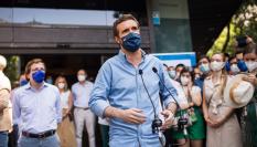 Lo que ha tenido que comprobar en directo Casado, y a su vera, es el tirón de Isabel Díaz Ayuso. Ella también ha tenido que interrumpir sus declaraciones, pero por otro motivo: los gritos de “presidenta, presidenta”. Sin duda, en el termómetro de fans en Colón ella ha arrasado en vítores. De hecho, el líder del PP ha tenido que escuchar algún “cobarde” y un “Ayuso, tú puedes sola”. Pero también había un grupo de jóvenes cachorros cerca para intentar neutralizar con un “oa, oa, oa, Casado a La Moncloa” (aunque la multitud alrededor no recogía el guante).